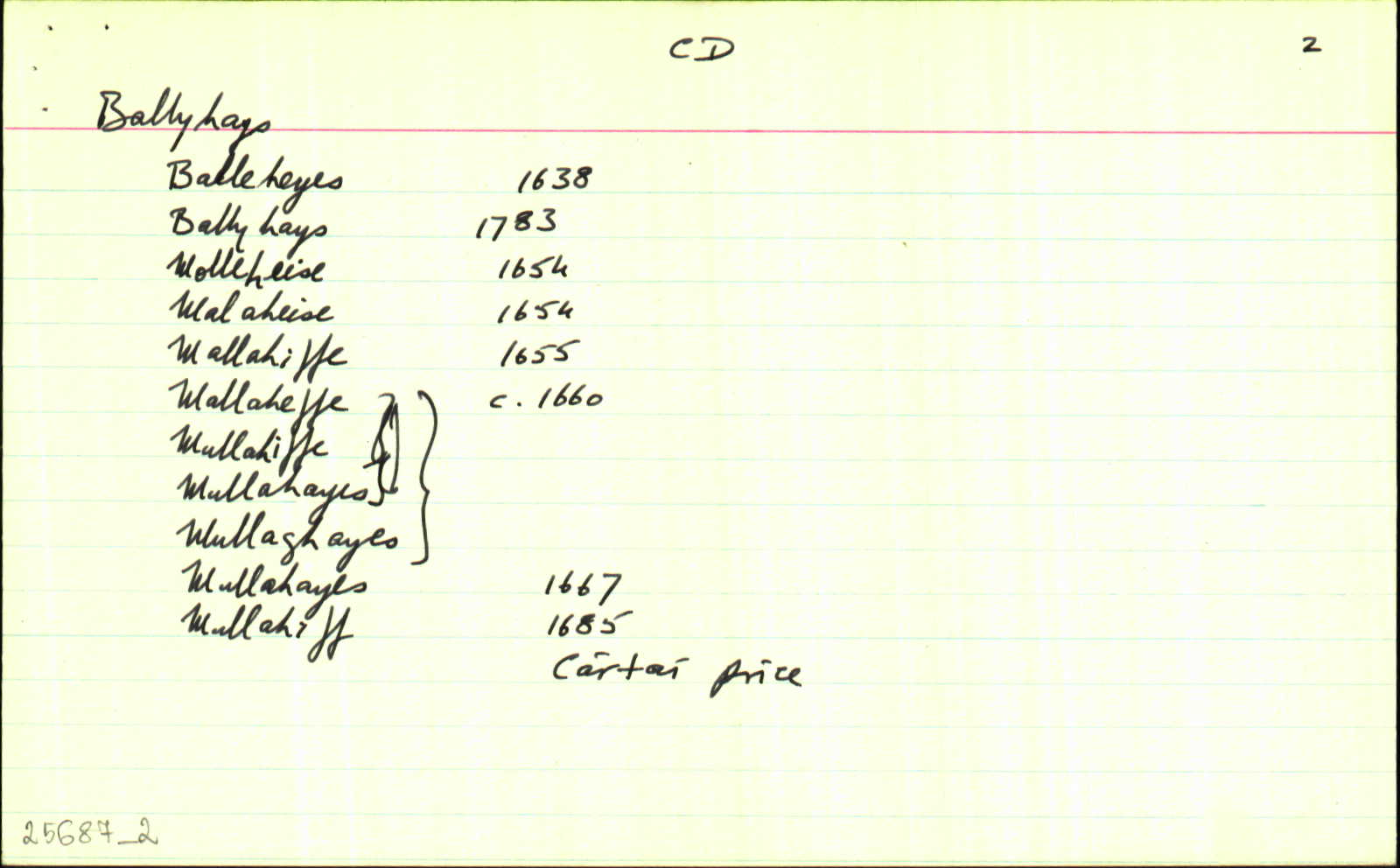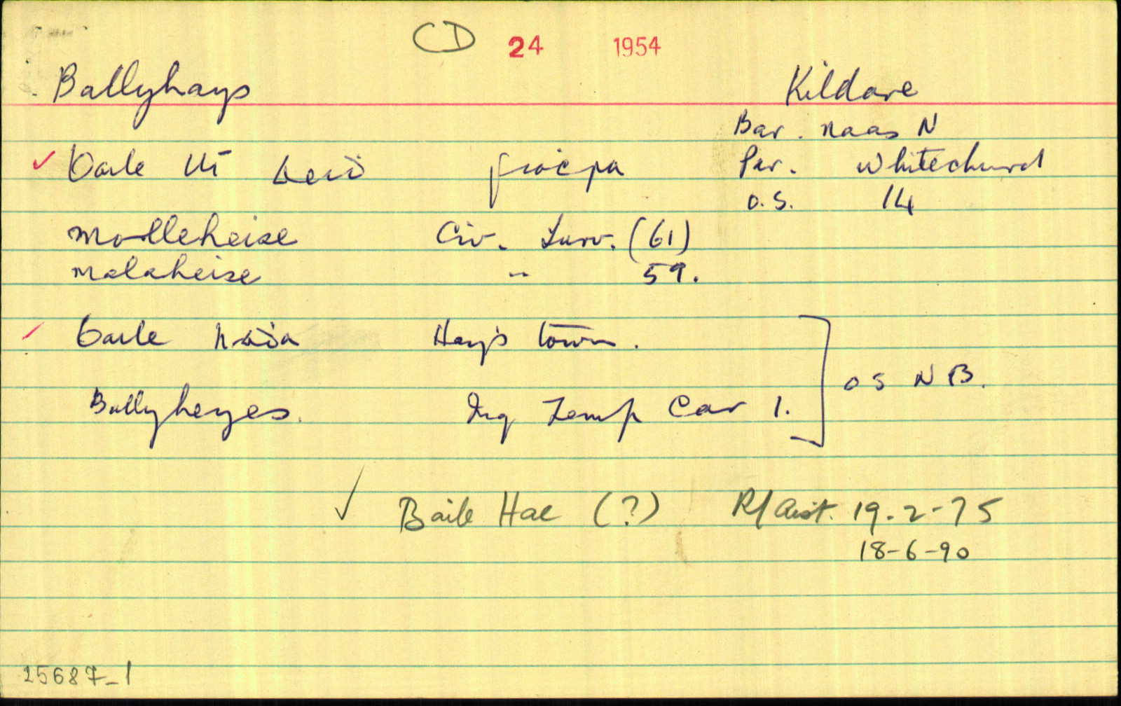 Please note: Some of the documentation from the archives of the Placenames Branch is available here. It indicates the range of research contributions undertaken by the Branch on this placename over the years. It may not constitute a complete record, and evidence may not be sequenced on the basis of validity. It is on this basis that this material is made available to the public.