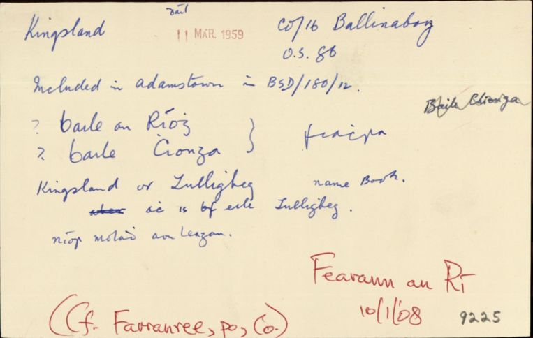Archival and research material provided on this site may be used, subject to acknowledgement. Issues regarding republication or other permissions or copyright should be addressed to logainm@dcu.ie.