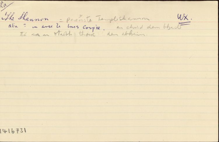 Aire: Cáipéisíocht áirithe chartlainne de chuid an Bhrainse Logainmneacha í seo. Léirítear anseo cuid de réimse thaighde an Bhrainse Logainmneacha ar an logainm seo thar na blianta. D'fhéadfadh sé nach taifead iomlán é agus nach bhfuil aon rangú in ord bailíochta déanta ar an bhfianaise atá ann. Is ar an tuiscint seo atá an t-ábhar seo á chur ar fáil don phobal.